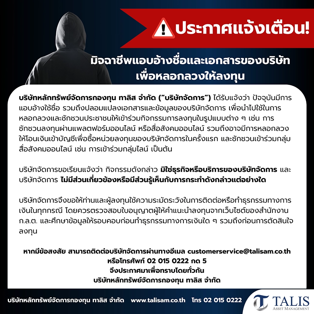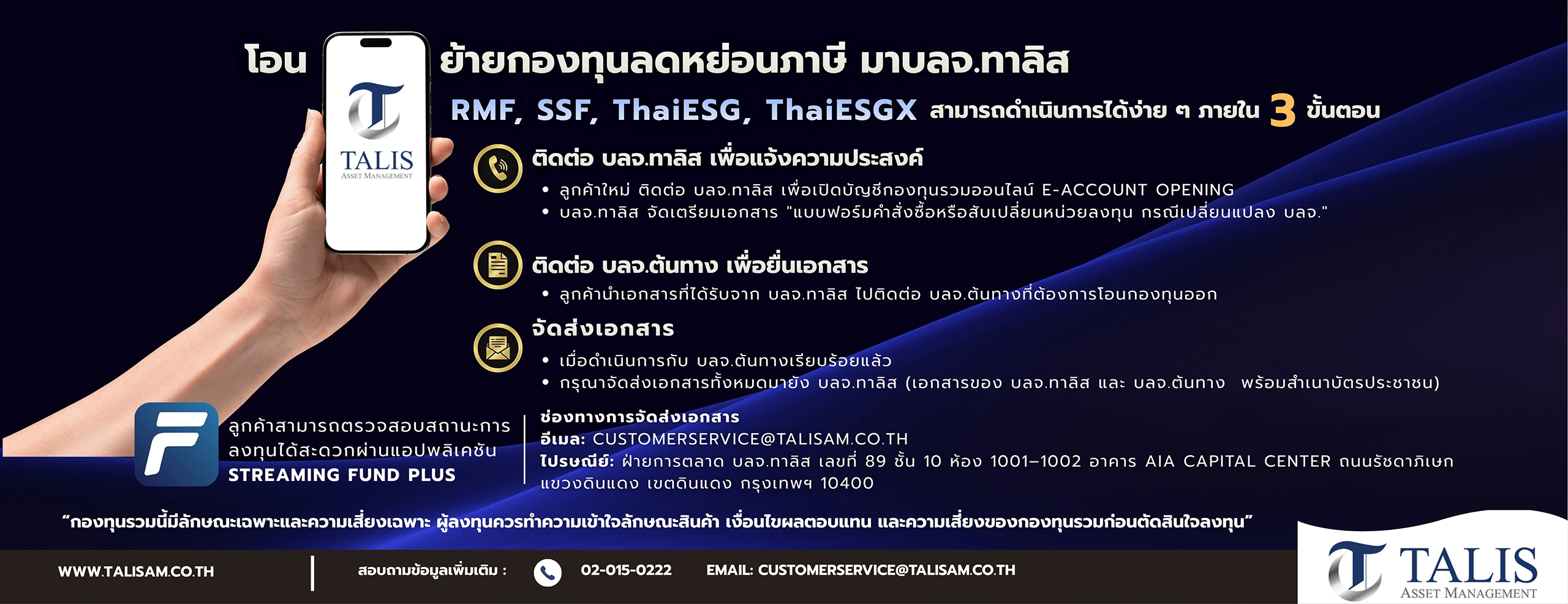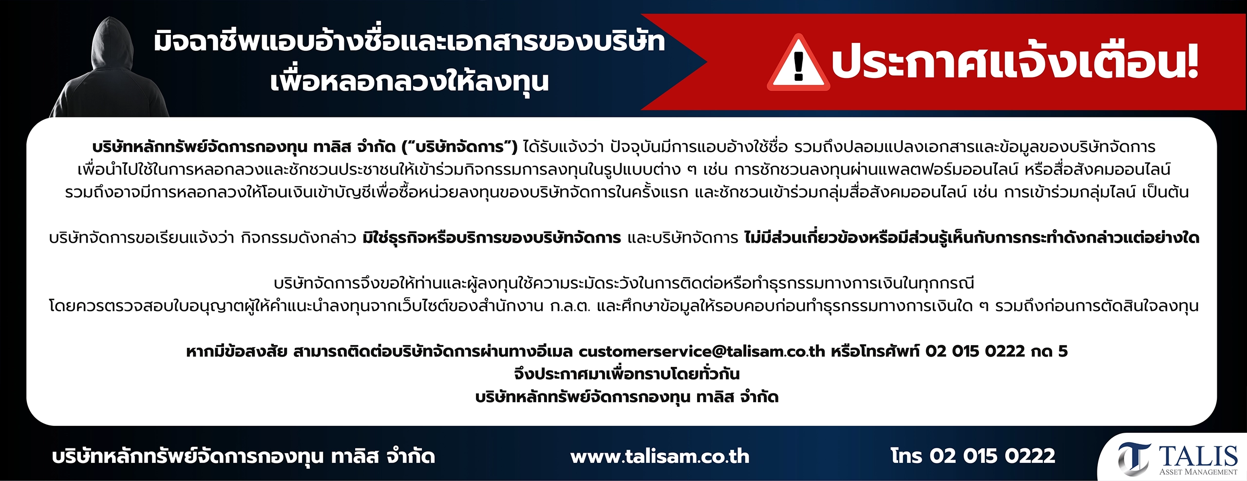 Talis Asset Management was founded in 2015 by Thailand’s most renowned professionals in the financial industry. We understand that each investor has different financial goals, budget constraints, and degrees of risk tolerance. That’s why we offer sound financial advice and investment plans tailored to suit your personal requirements. Our experts have over 20 years of experience in the financial industry, so you can rest assured that your investments are in good hands.